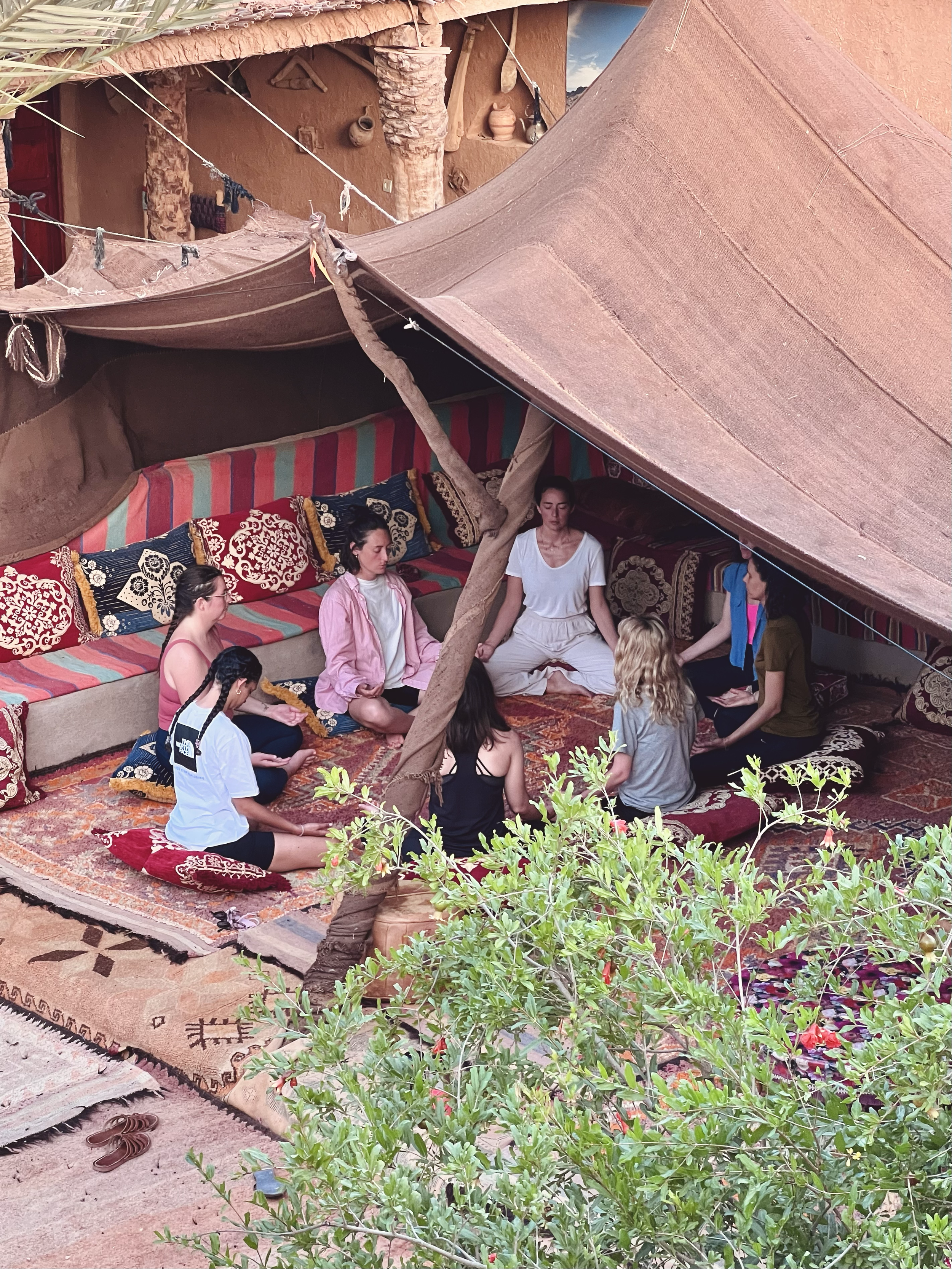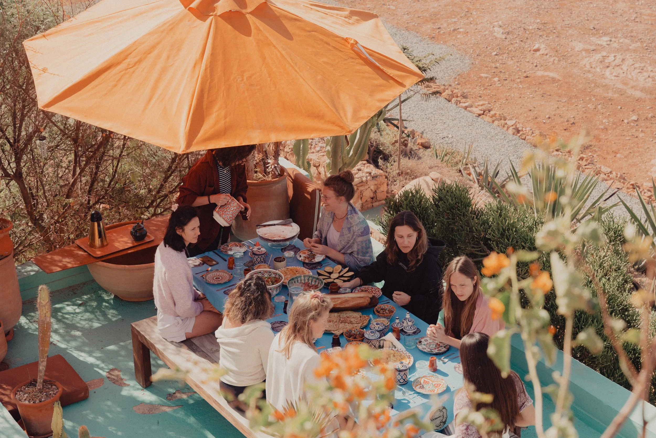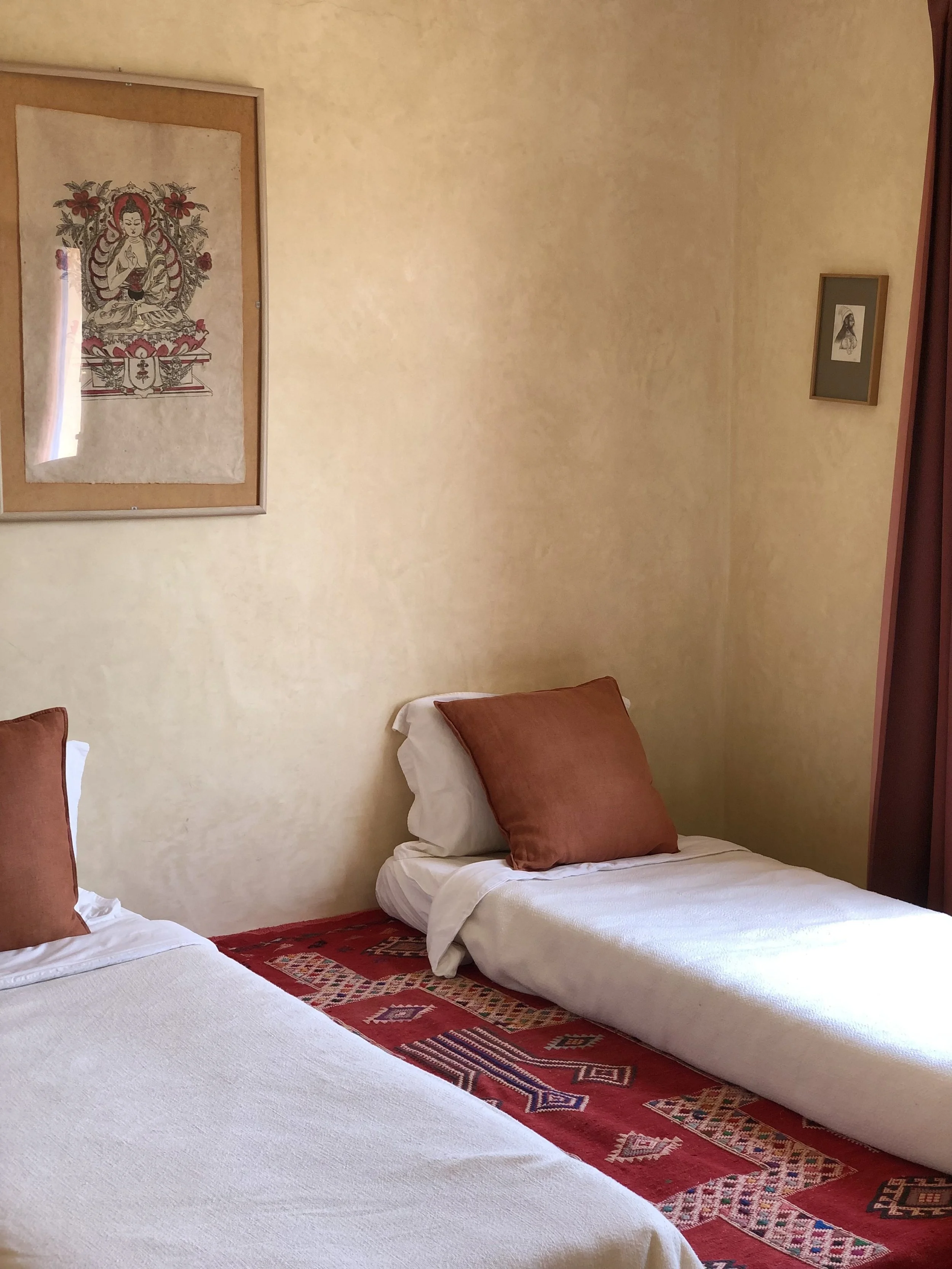 Il est possible d’arriver jusqu’à 1 nuit avant le début de la retraite et de rester jusqu’à 1 nuit de plus. Nous proposons une offre spéciale sur les nuits en bed & breakfast pour les participantes de nos retraites : 40 €/nuit avec petit-déjeuner inclus. (Cela permet notamment d’avoir plus de choix pour les vols à destination d’Agadir.)